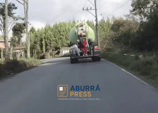 📍Llanos de Cuivá, Antioquia | Una situación de alto riesgo fue registrada en la mañana de ayer viernes en el sector de Llanos de Cuivá, en el norte de Antioquia. Hacia las 8:25 a.m., un grupo de personas fue captado movilizándose en la parte trasera de un camión cisterna, en plena vía pública.