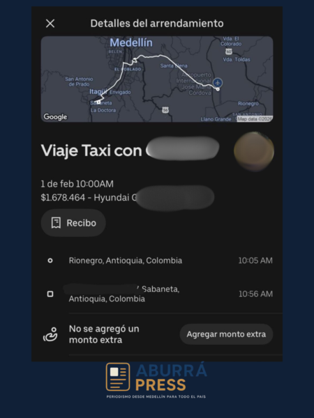 📍Medellín, Antioquia | Lo que para muchos es un trayecto cotidiano terminó convirtiéndose en una historia que hoy circula con fuerza en redes sociales y grupos de WhatsApp en Colombia. Un usuario de la aplicación de transporte Uber denunció que, tras tomar un servicio desde el Aeropuerto Internacional José María Córdova, en Rionegro, hasta el municipio de Sabaneta —un trayecto común en el Valle de Aburrá—, le cobraron en su tarjeta de crédito más de $1.600.000 pesos, una cifra trece veces superior al valor estimado mostrado al solicitar el viaje.